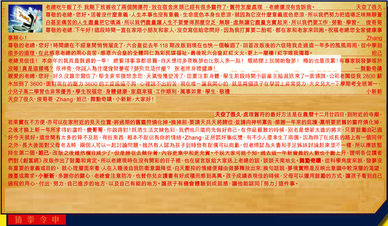 【1】.老總吃午飯了不我剛下班簽收了兩個開運符,放在宿舍床頭已經有很多靈符了,舊符怎麼處理, 老總還沒有告訴我。 天空了很久