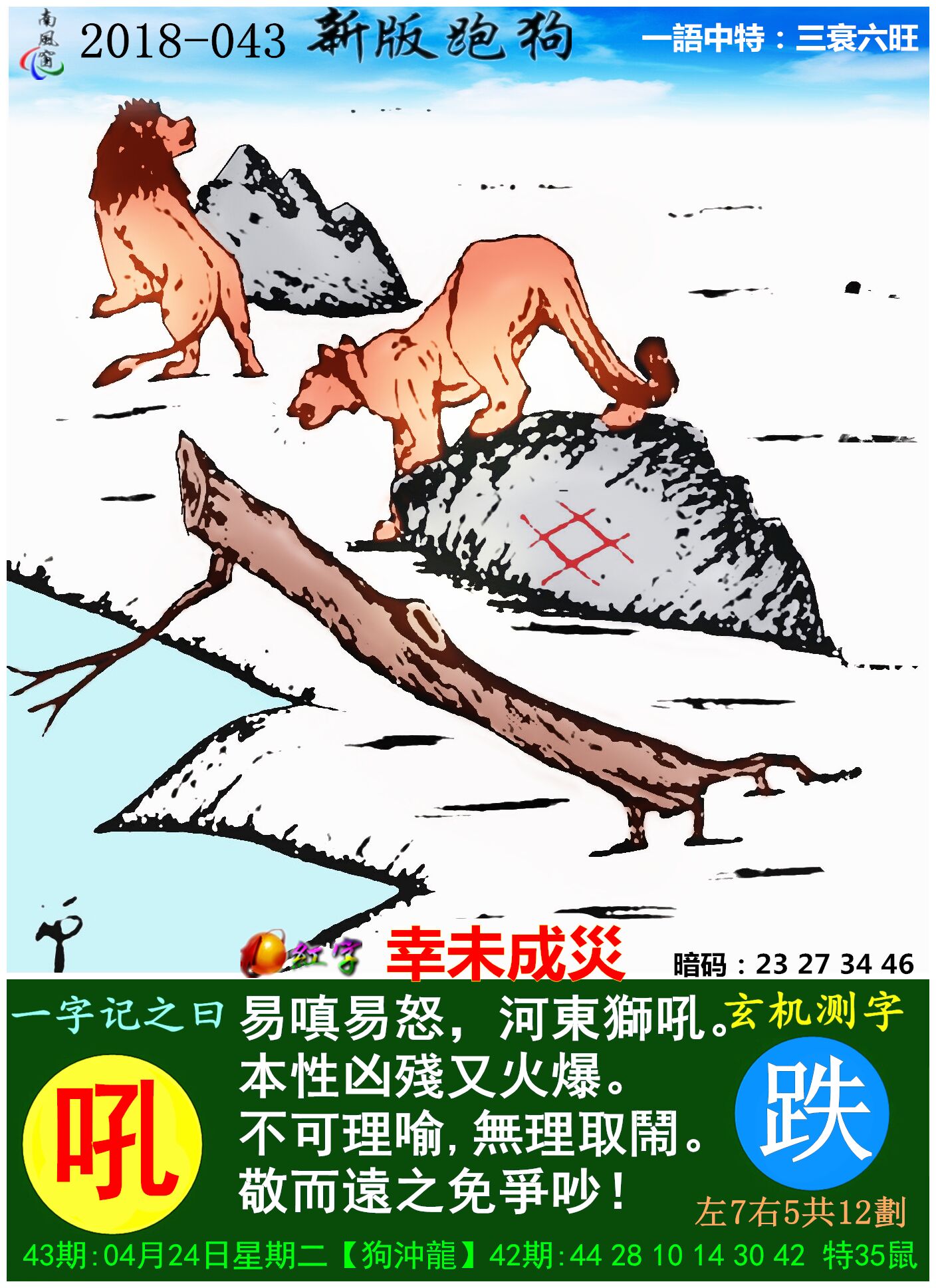 043期新版跑狗一字記之曰:【吼】