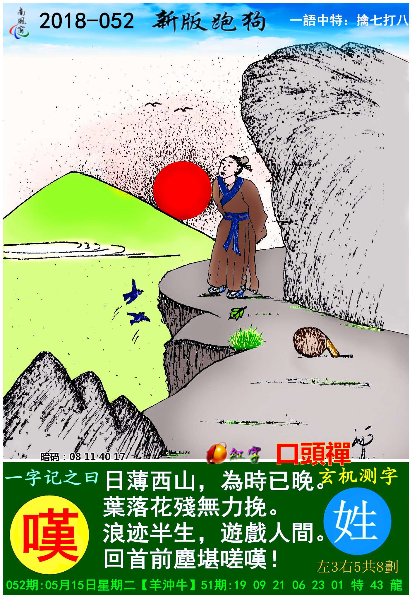 主题 : 052期:新版跑狗一字記之曰【嘆】 玄機測字《姓》