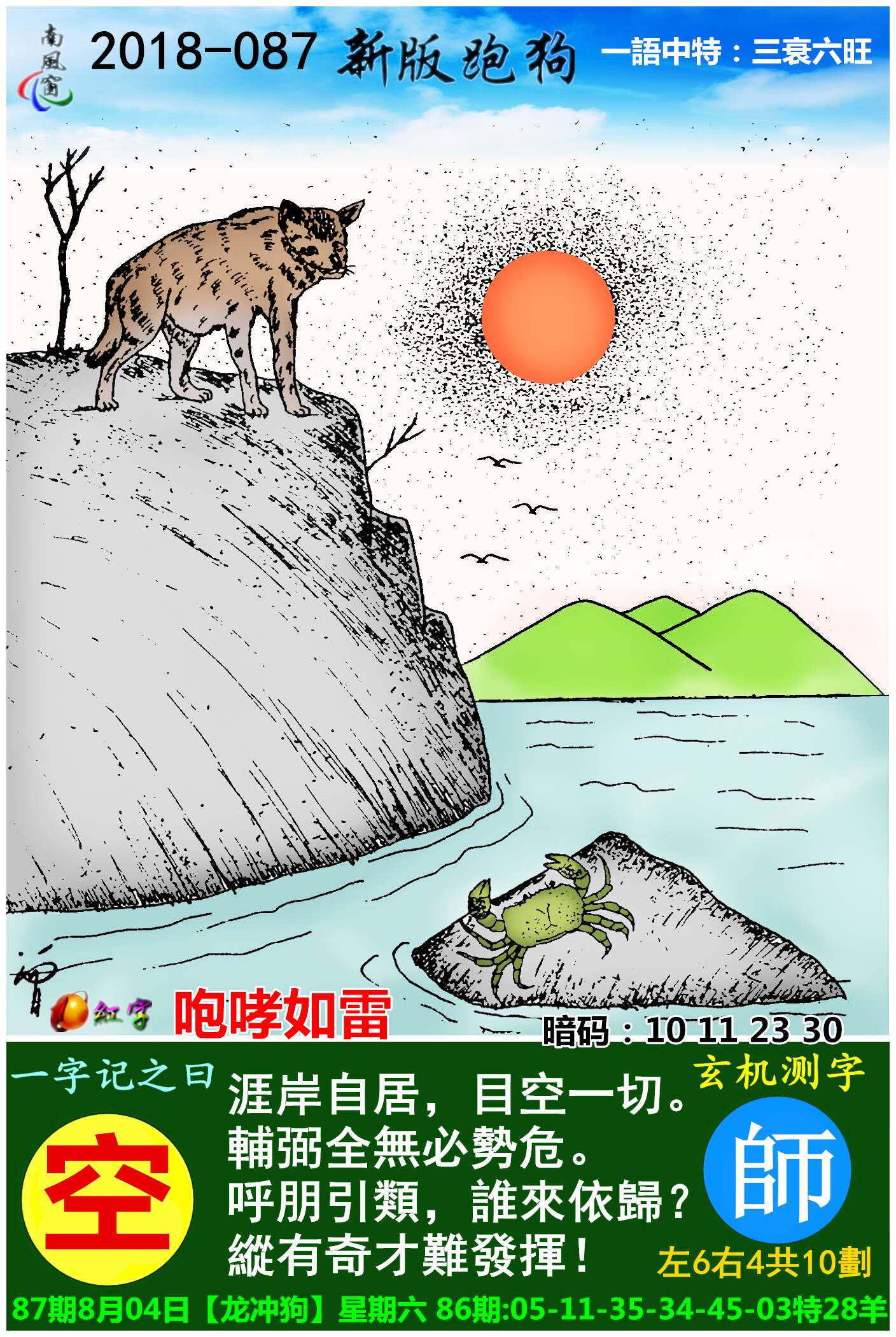 087期:新版跑狗一字記之曰【空】玄機測字《師》