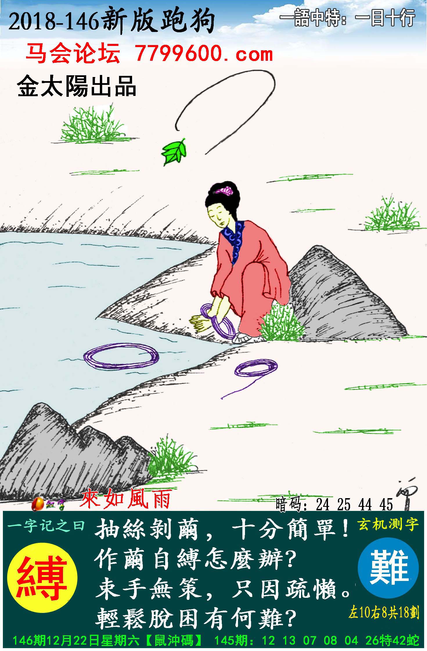 主题 : 146期:新版跑狗一字記之曰【縛】玄機測字:《難》