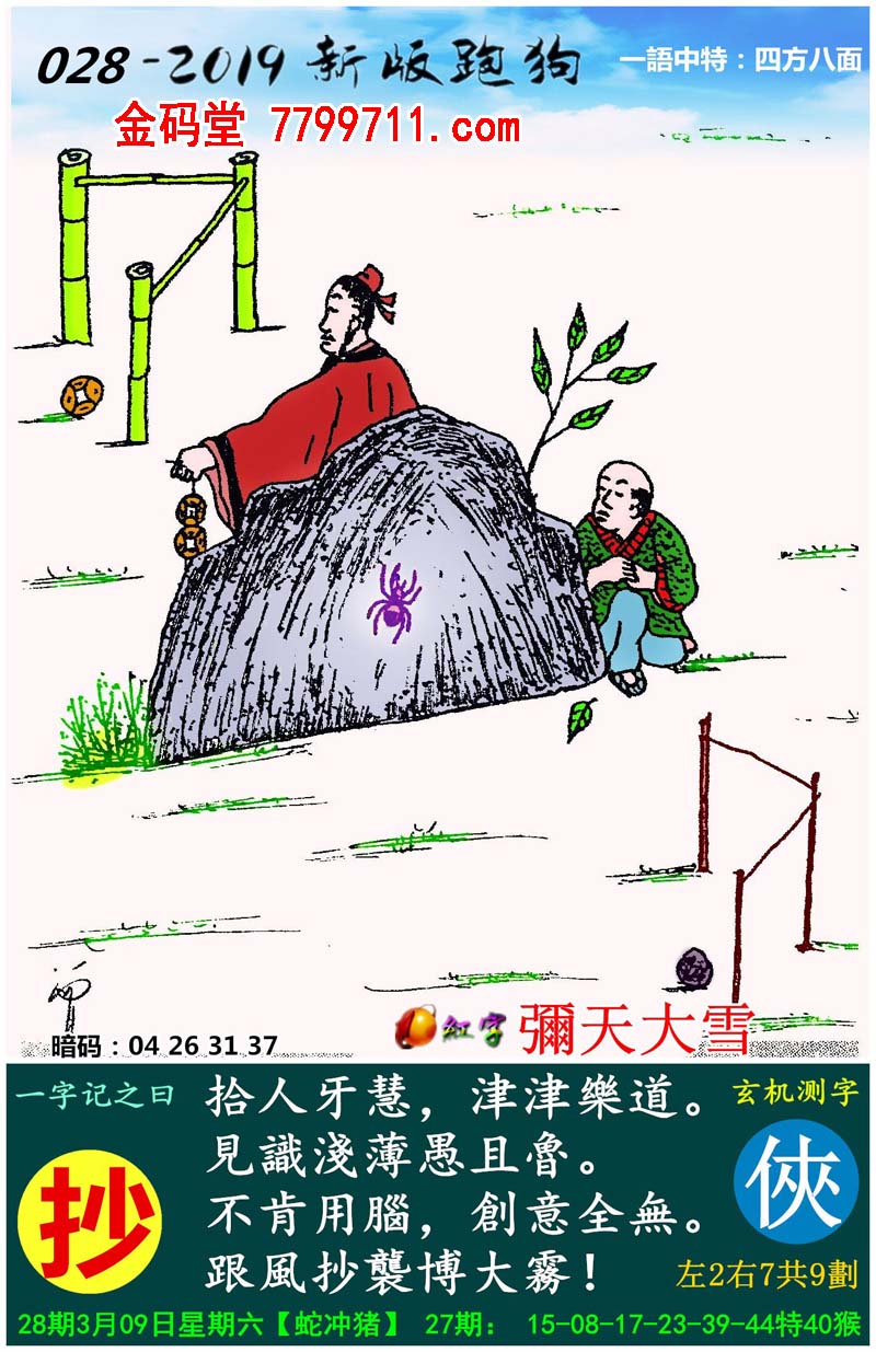 028期:新版跑狗一字記之曰【抄】玄機測字:《俠》