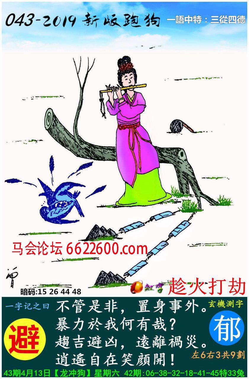 043期新版跑狗一字記之曰:【避】