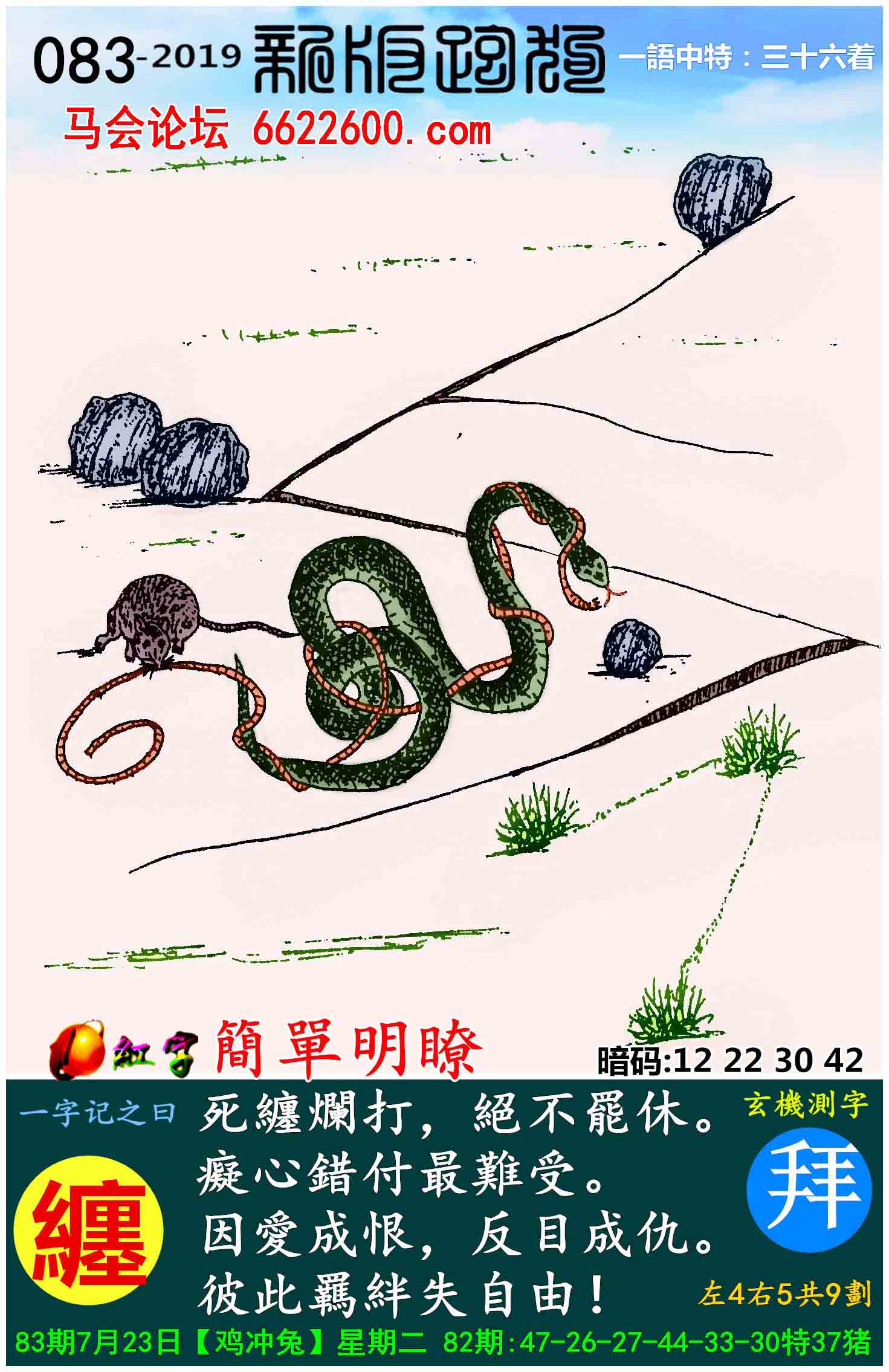 083期新版跑狗一字記之曰:【纏】