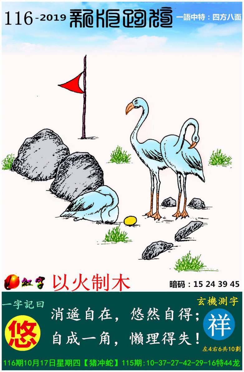116期:新版跑狗一字記之曰【悠】玄機測字:《祥》