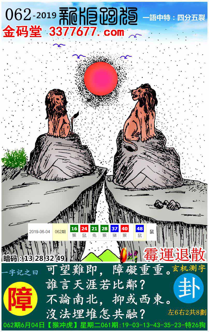 主题 : 022期:新版跑狗一字記之曰【障】玄機測字:《沖》