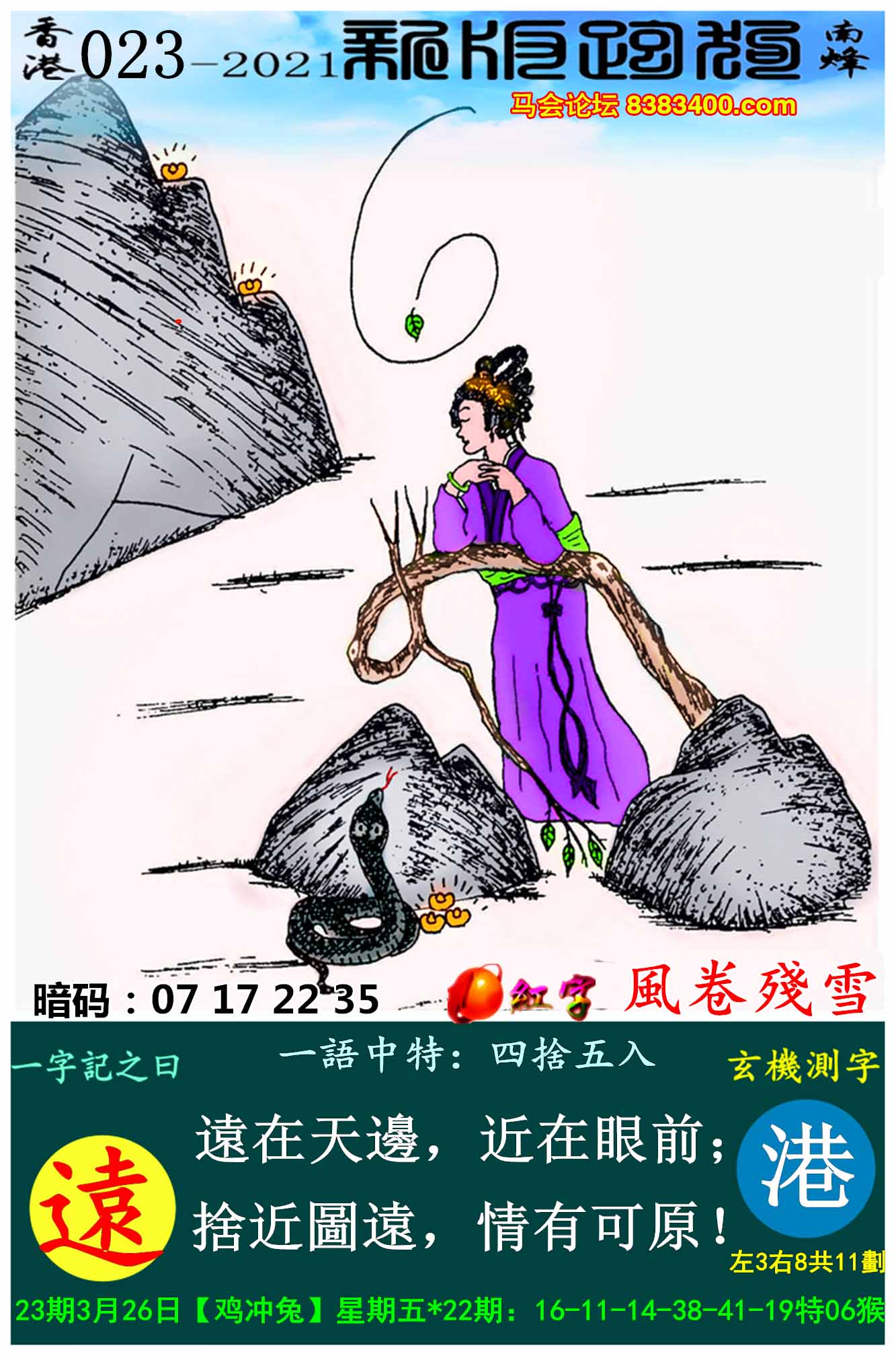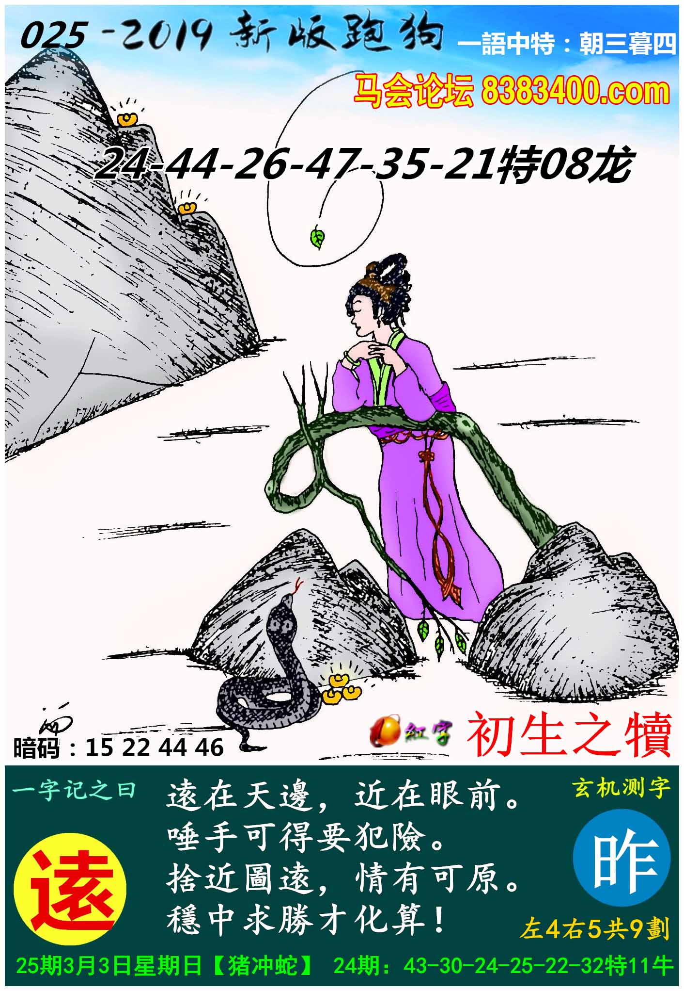 主题 : 023期:新版跑狗一字記之曰【遠】玄機測字:《潘》