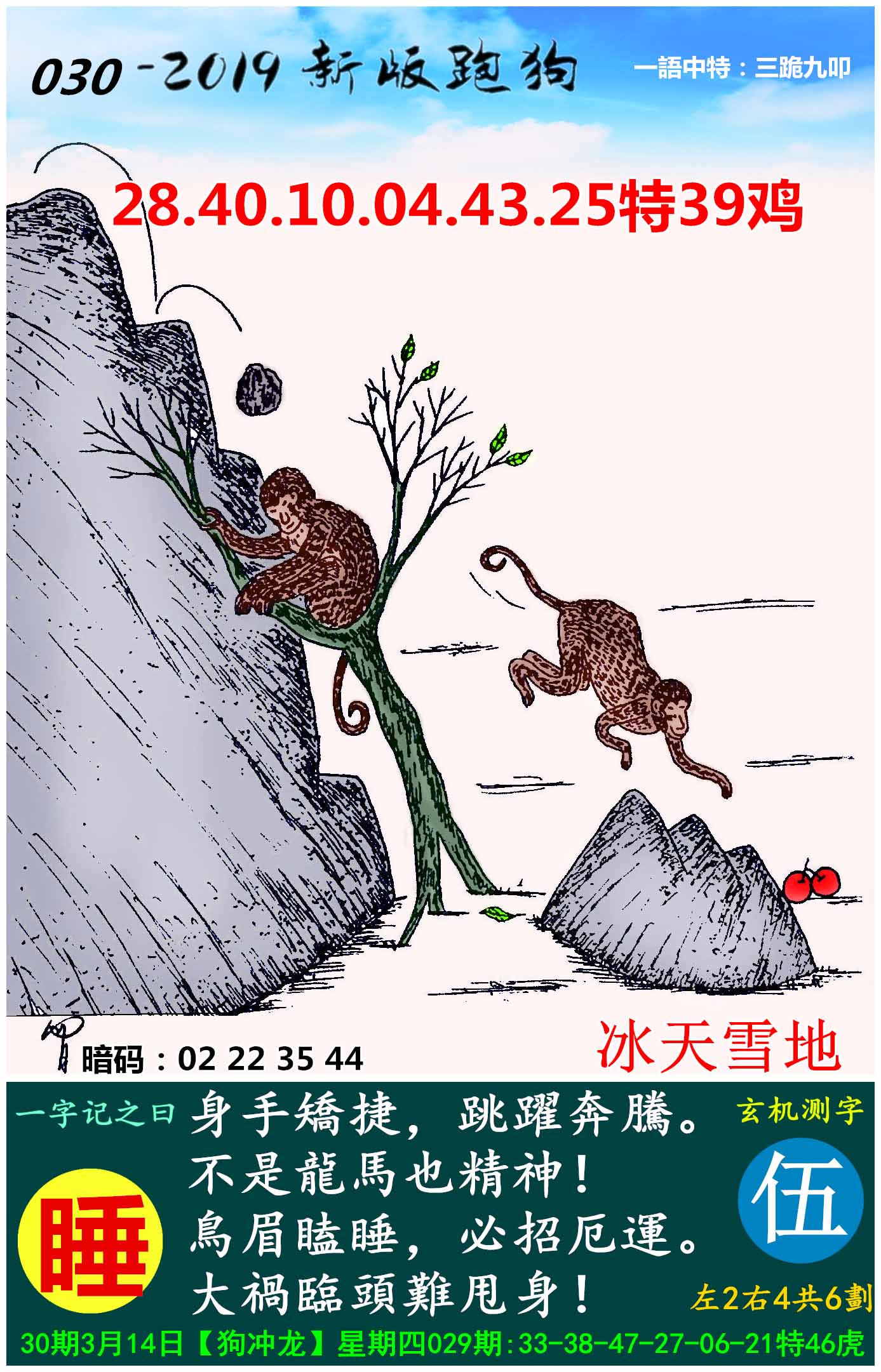 049期新版跑狗一字記之曰:【睡】