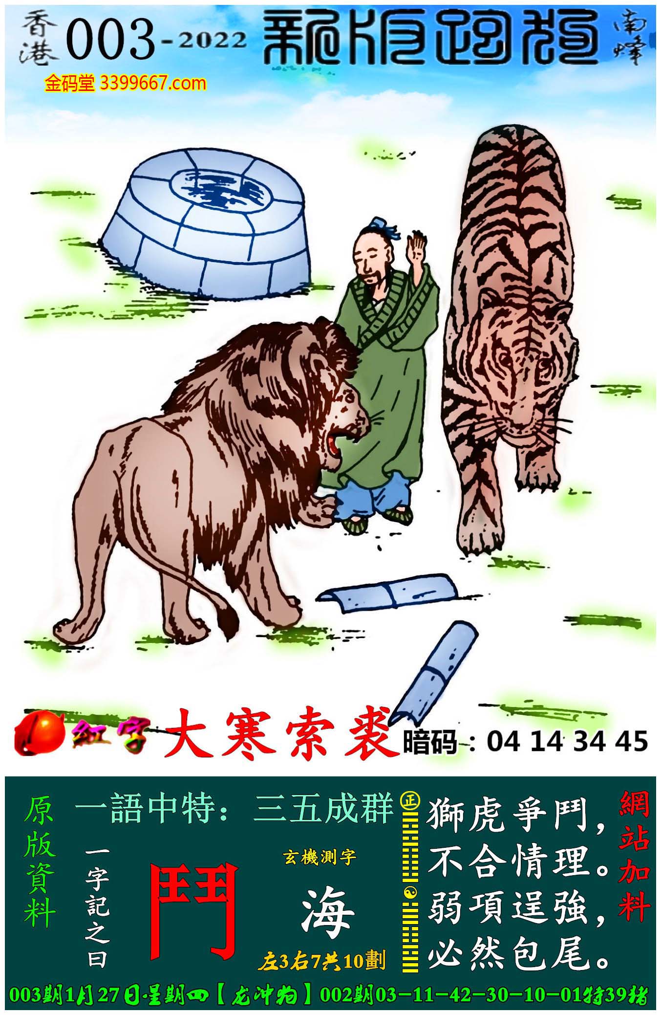 003期:新版跑狗一字記之曰【鬥】玄機測字:《海》
