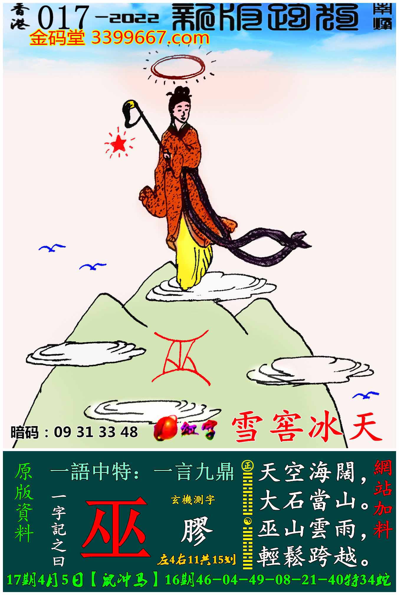 017期新版跑狗一字記之曰:【巫】