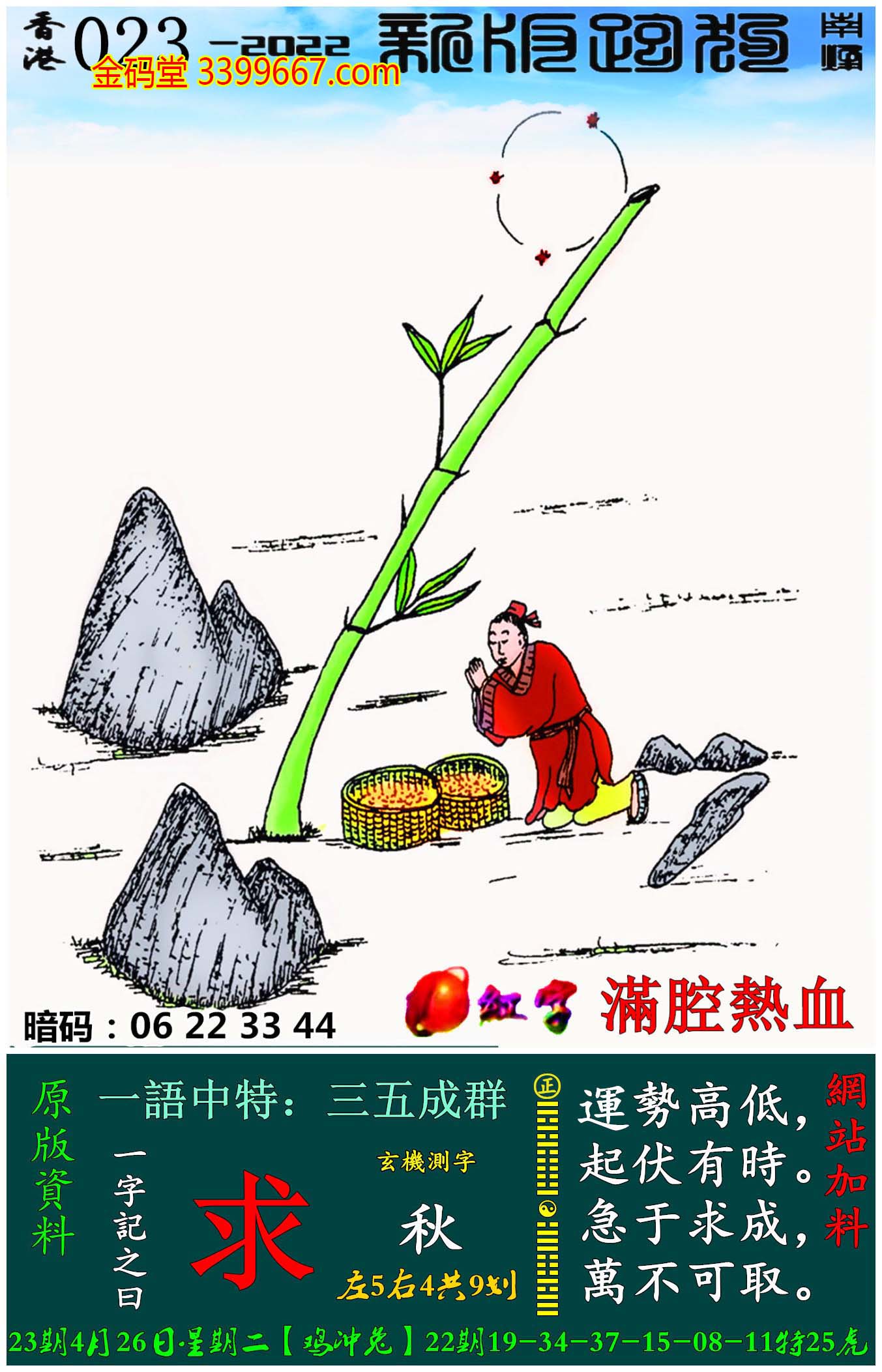 023期:新版跑狗一字記之曰【求】玄機測字:《秋》