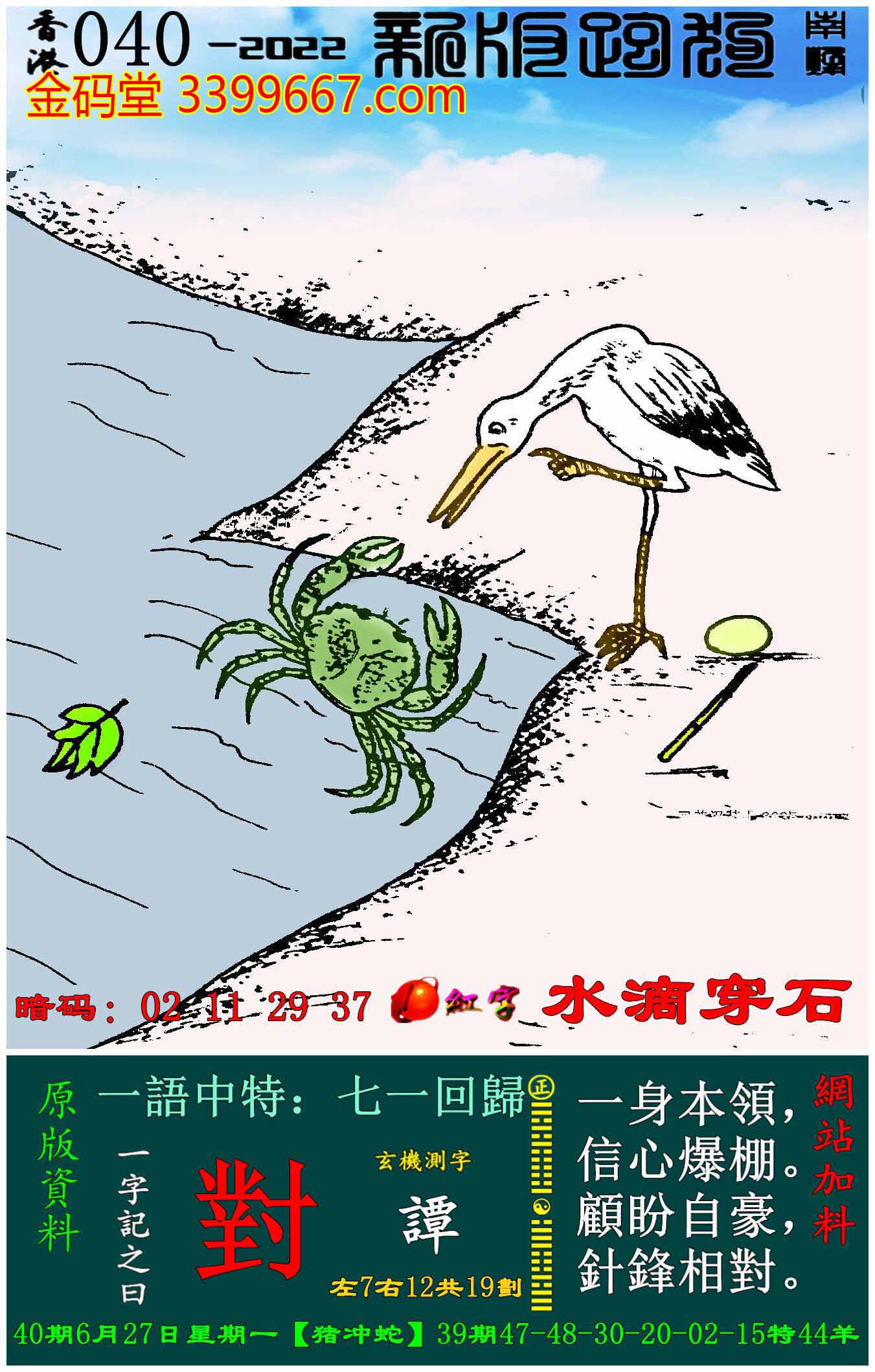 040期:新版跑狗一字記之曰【對】玄機測字:《譚》