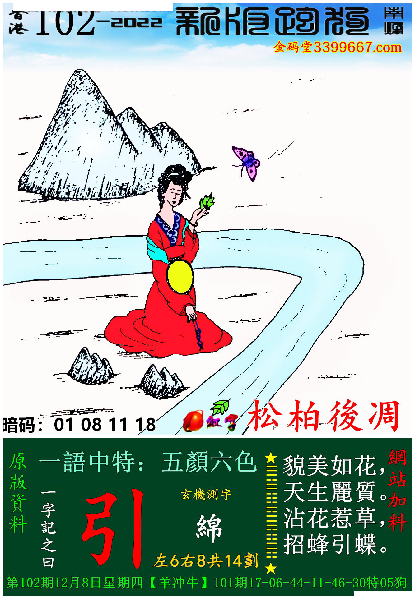 主题 : 102期:新版跑狗一字記之曰【引】玄機測字:《綿》