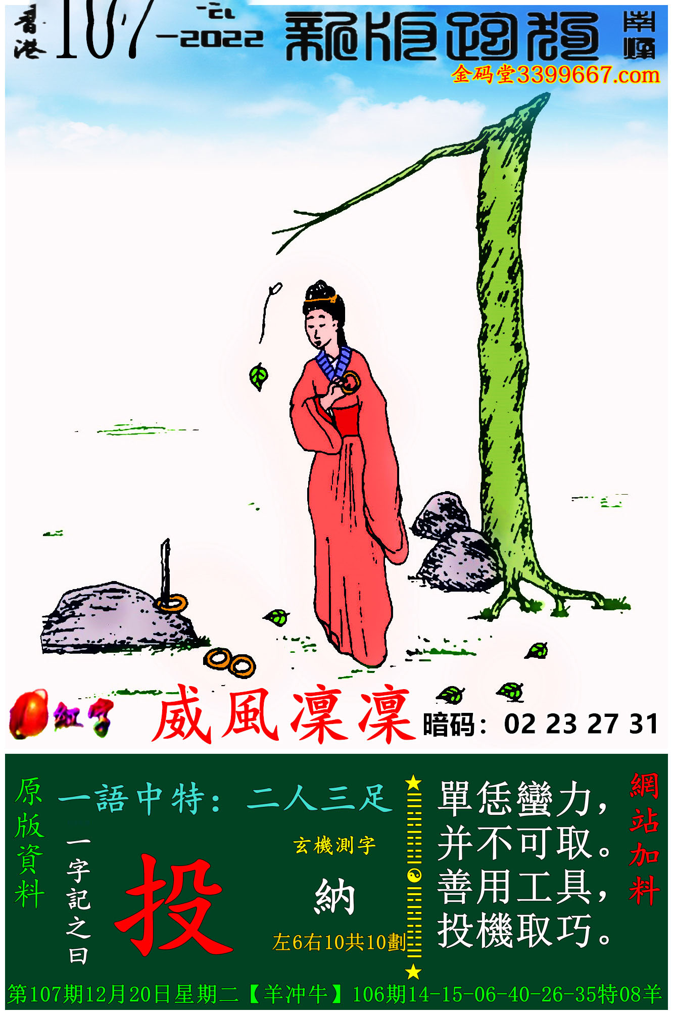 主题 : 107期:新版跑狗一字記之曰【投】玄機測字:《納》