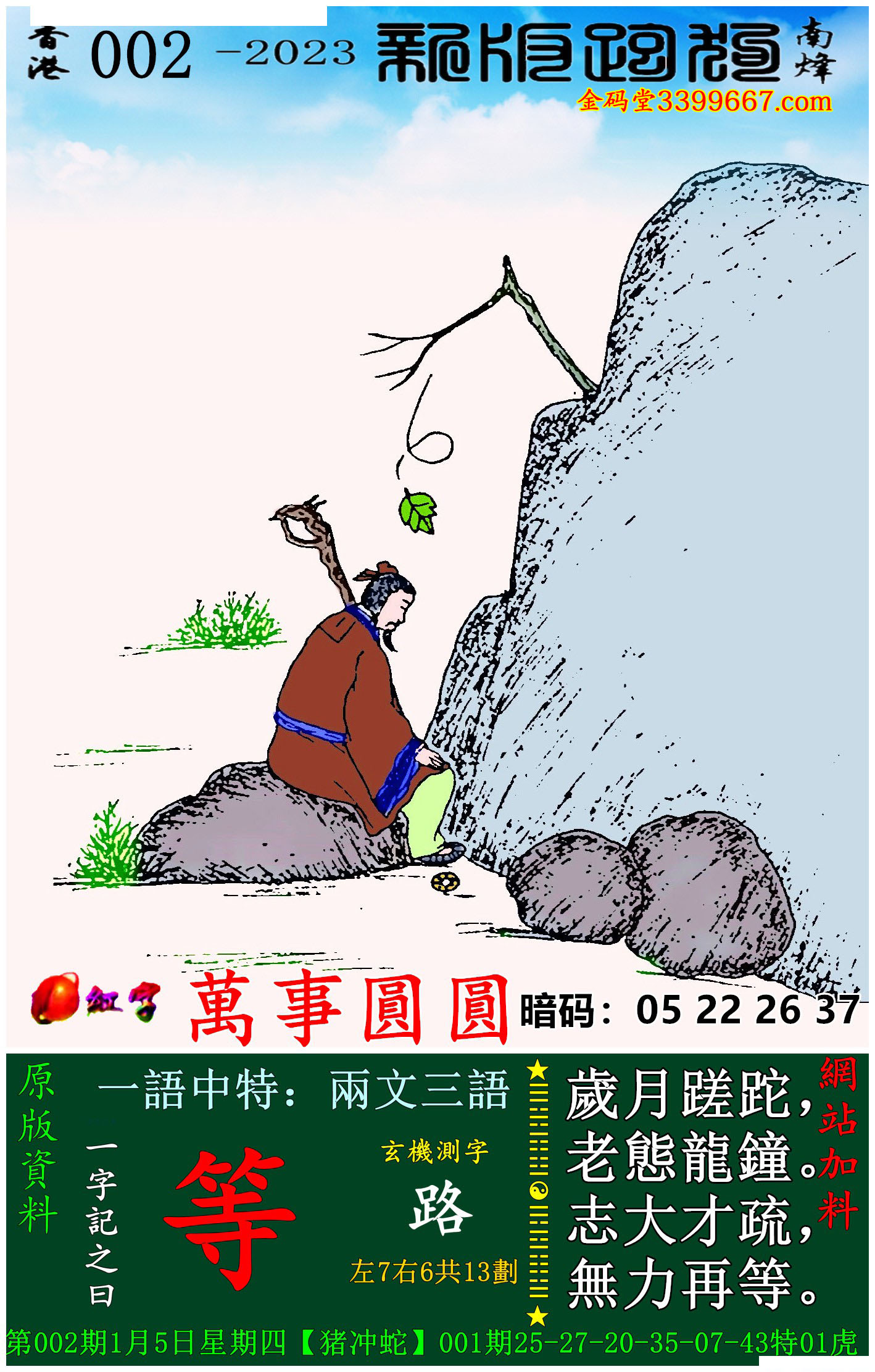 002期:新版跑狗一字記之曰【等】玄機測字:《路》