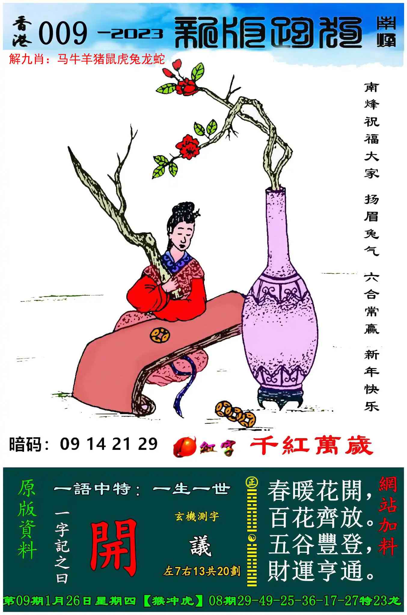 009期新版跑狗一字記之曰:【開】