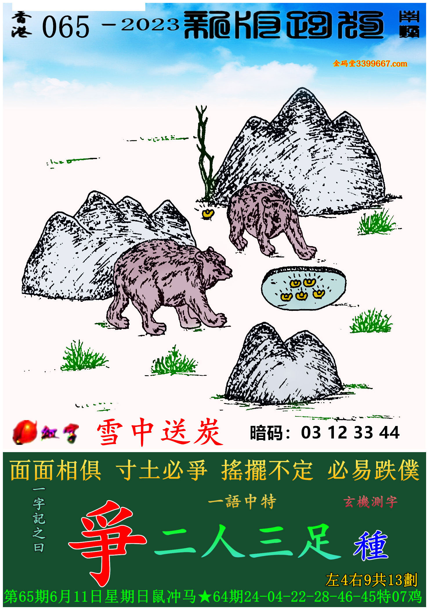 065期新版跑狗一字記之曰:【爭】