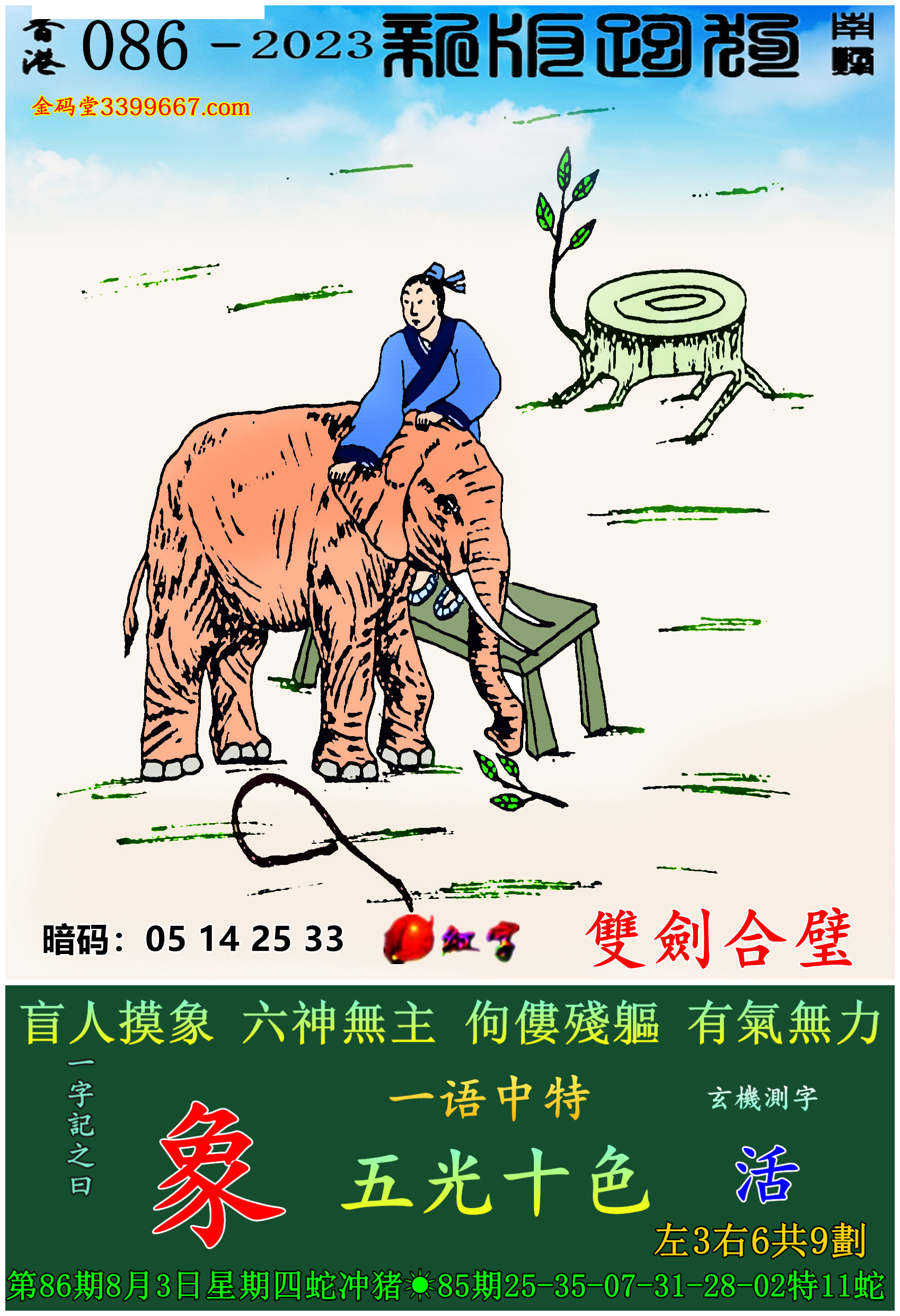 086期新版跑狗一字記之曰:【象】