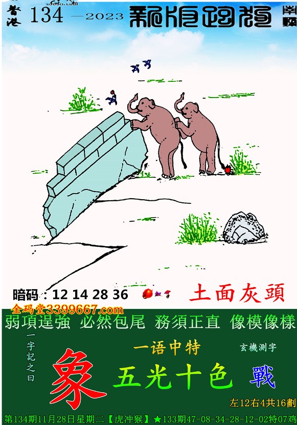 134期:新版跑狗一字記之曰【象】 玄機測字:《戰》