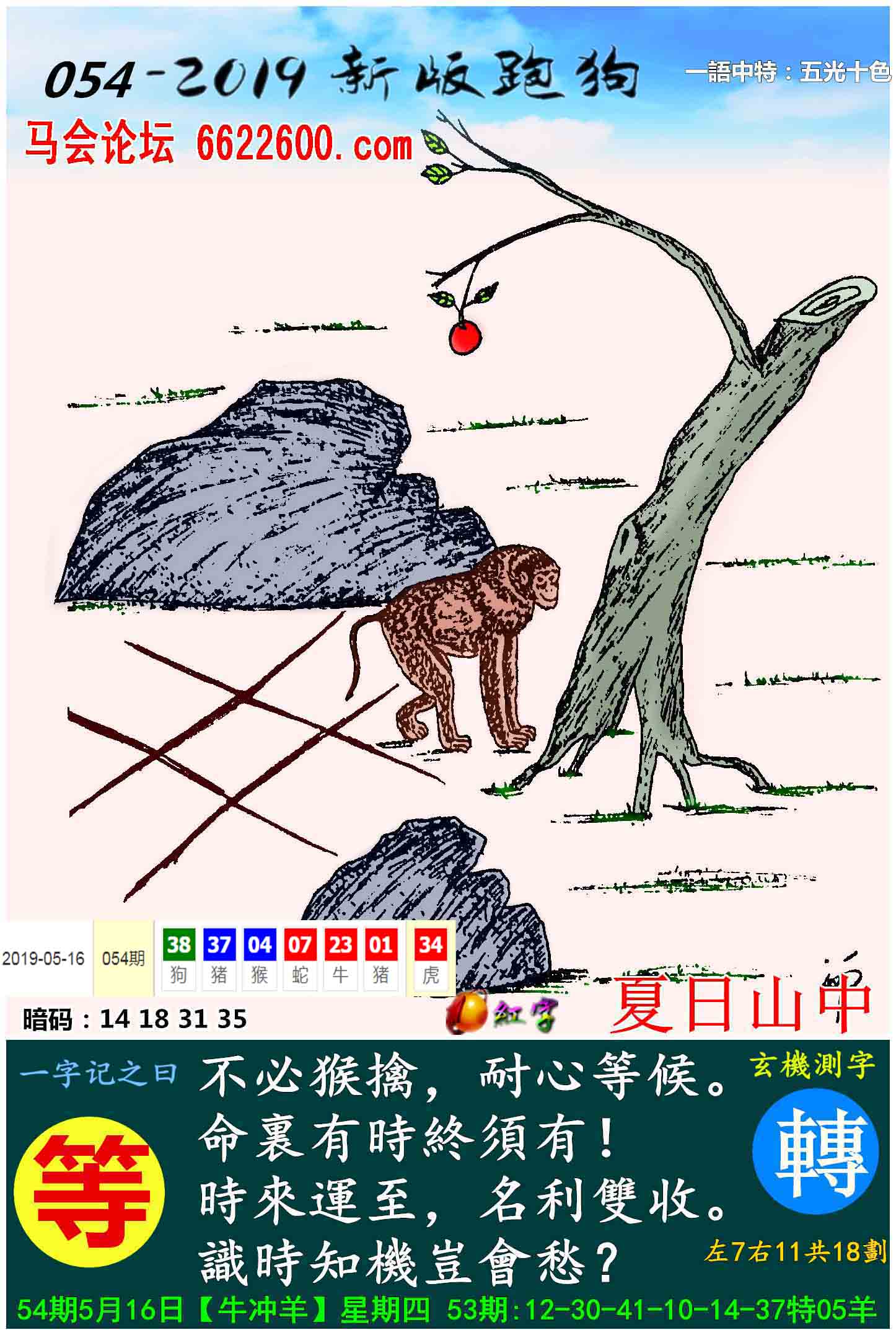 011期:新版跑狗一字記之曰【等】 玄機測字:《理》