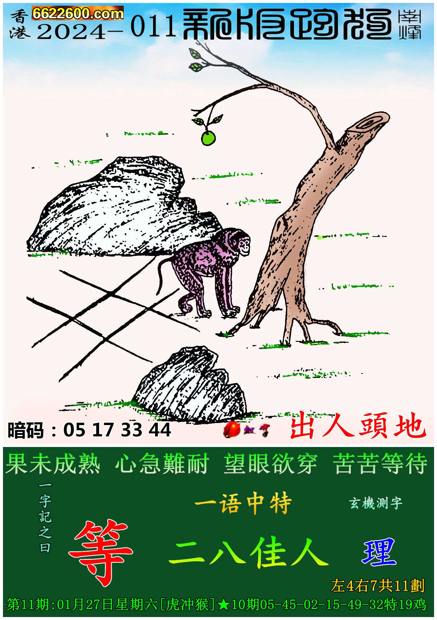 011期新版跑狗一字記之曰:【等】