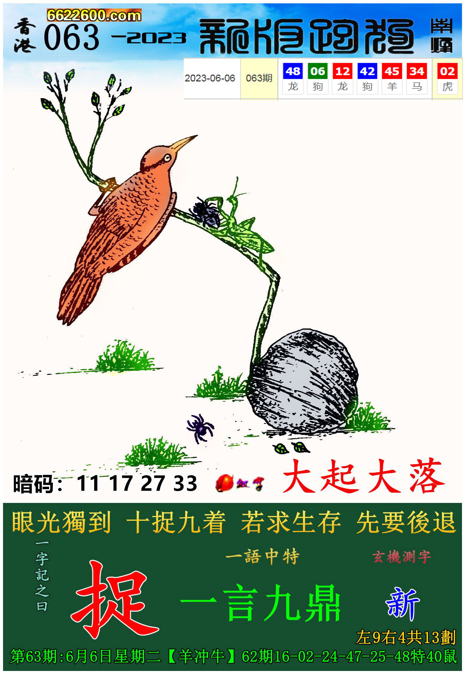 013期:新版跑狗一字記之曰【捕】 玄機測字:《媒》