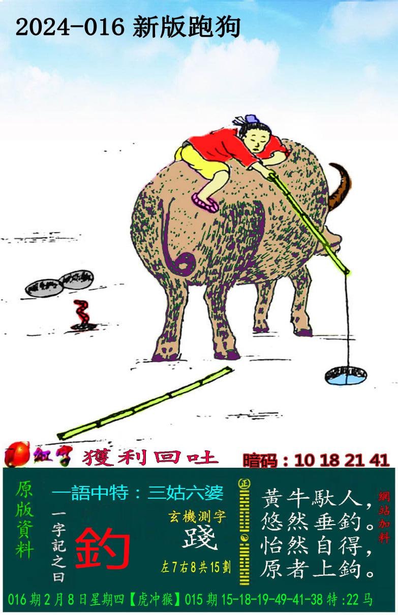 016期新版跑狗一字記之曰:【釣】