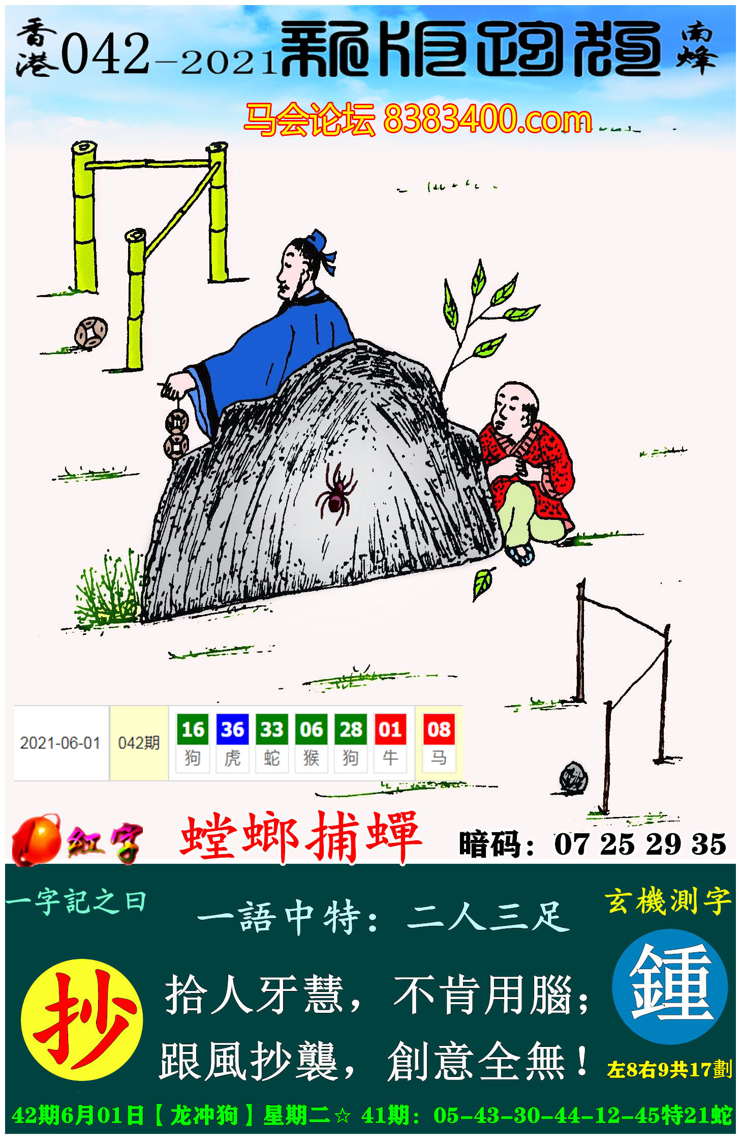 主题 : 032期:新版跑狗一字記之曰【引】 玄機測字:【謀】