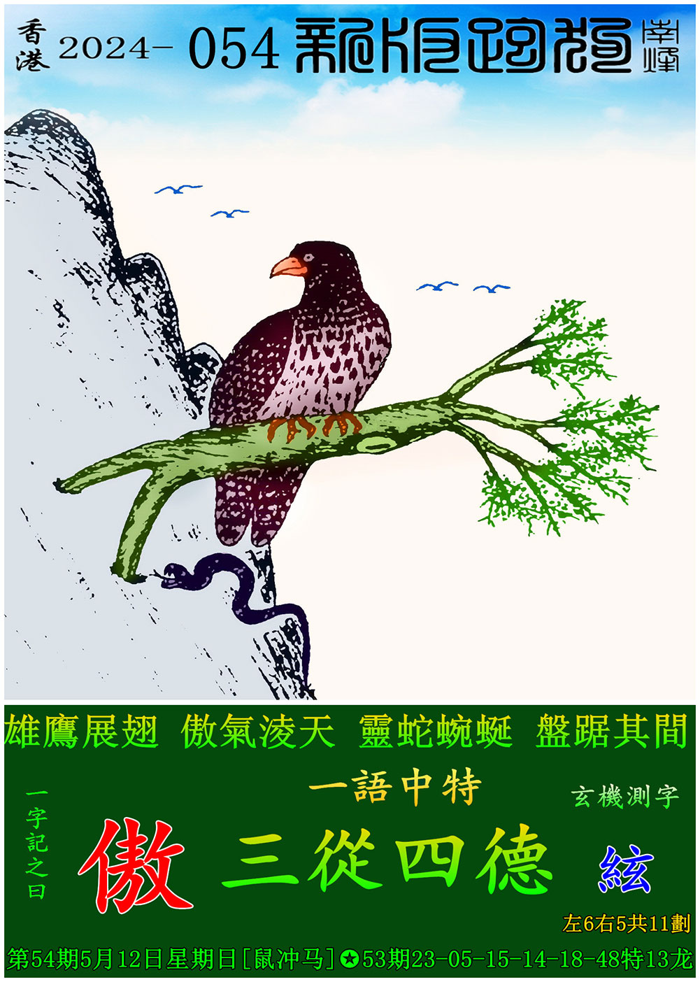 054期:新版跑狗一字記之曰【傲】 玄機測字:【絃】