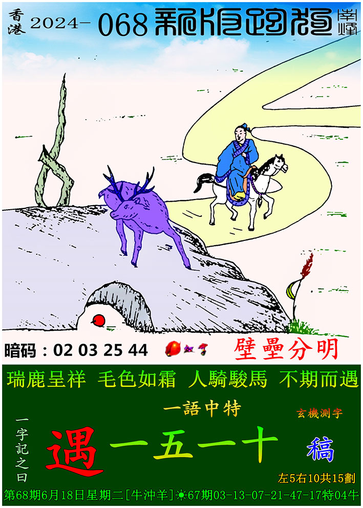 主题 : 068期:新版跑狗一字記之曰【遇】 玄機測字:【稿】