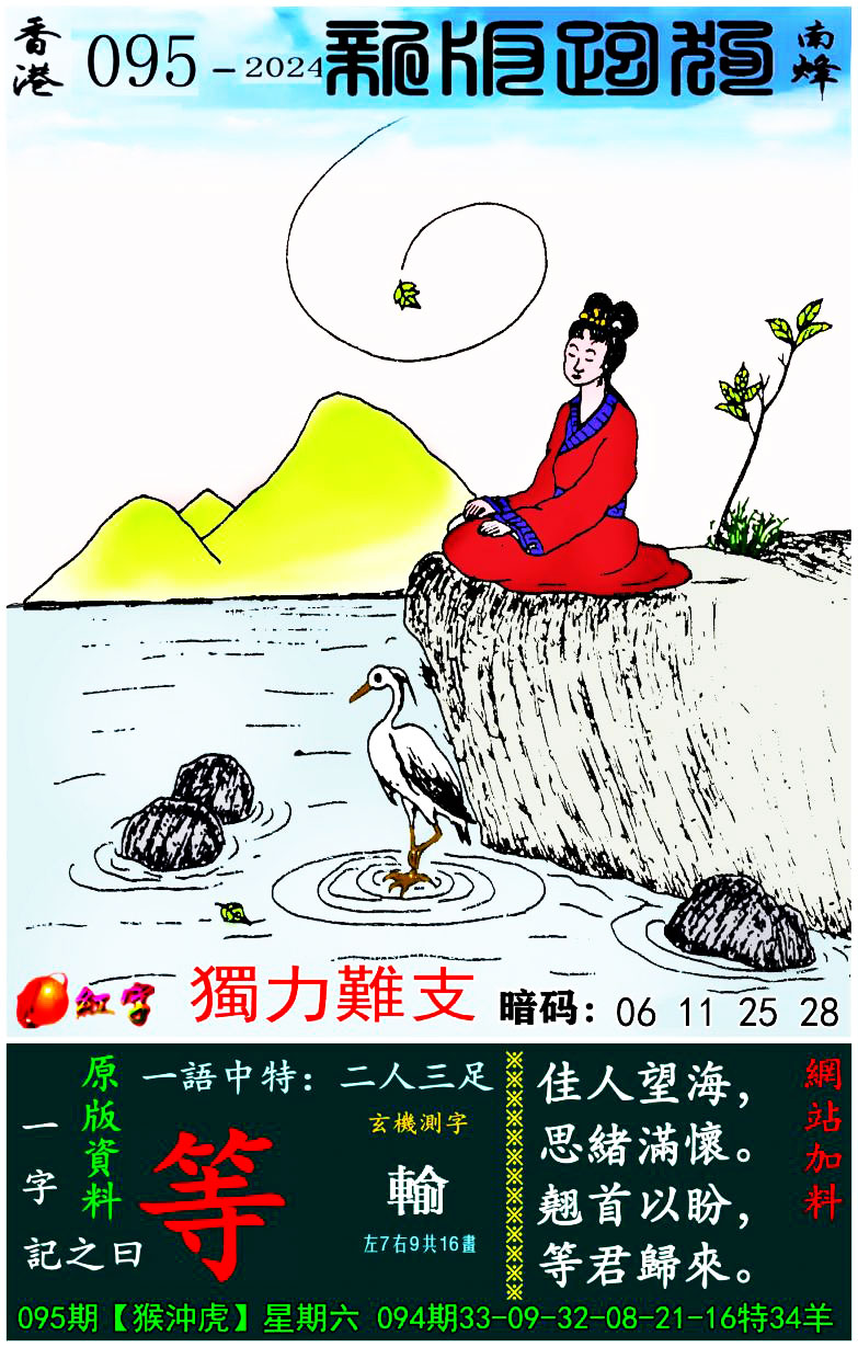 095期:新版跑狗一字記之曰【等】 玄機測字:【輸】