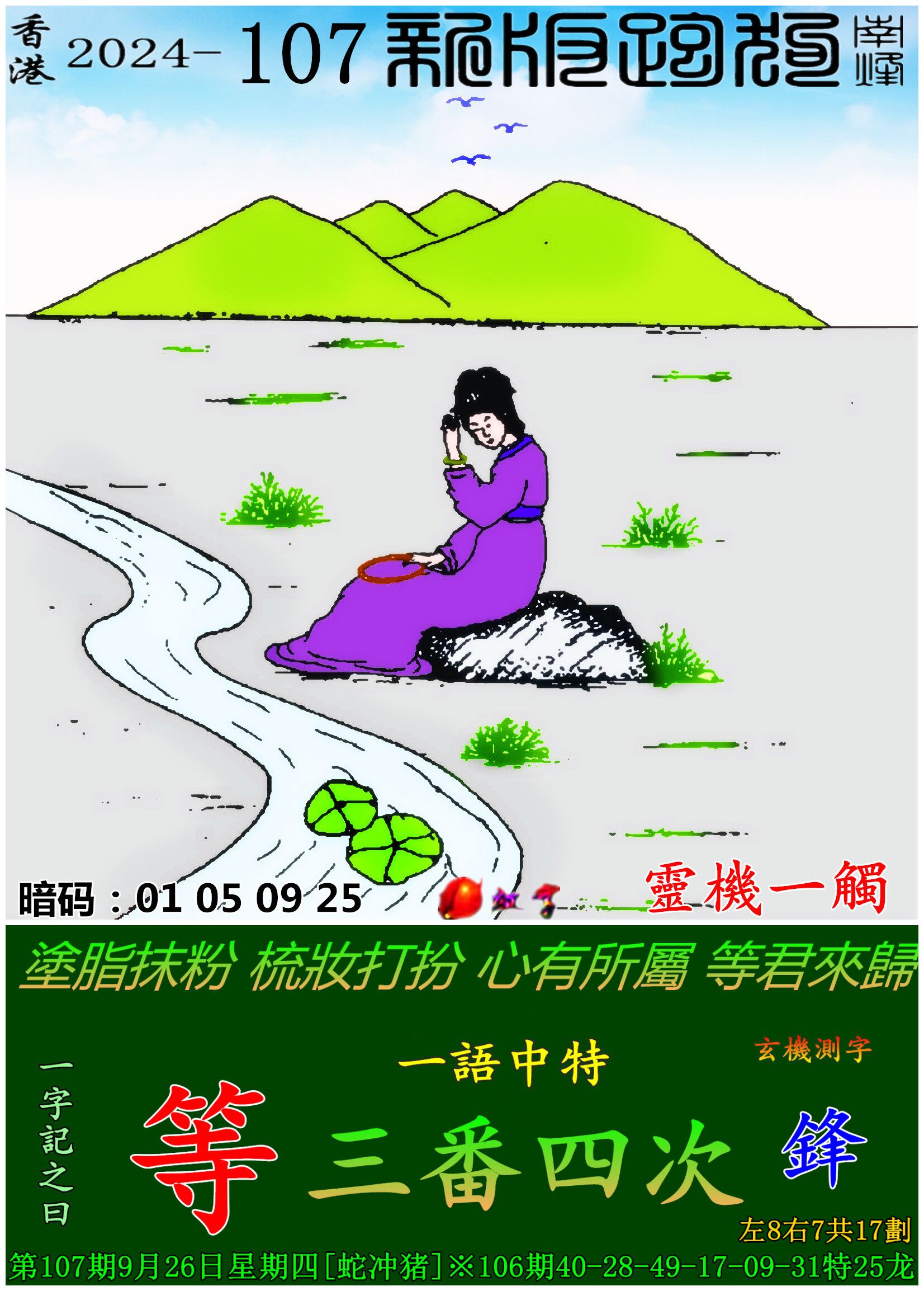 主题 : 107期:新版跑狗一字記之曰【等】 玄機測字:【鋒】