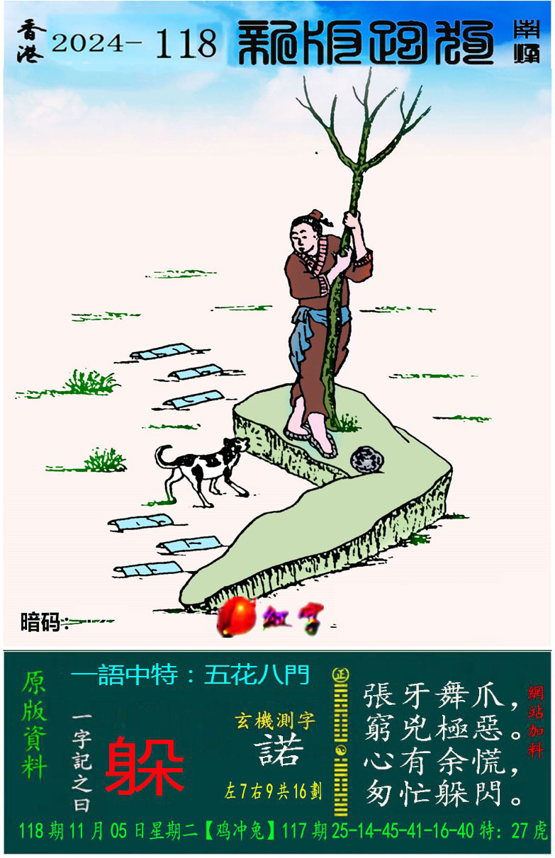 主题 : 118期:新版跑狗一字記之曰【躲】 玄機測字:【諾】