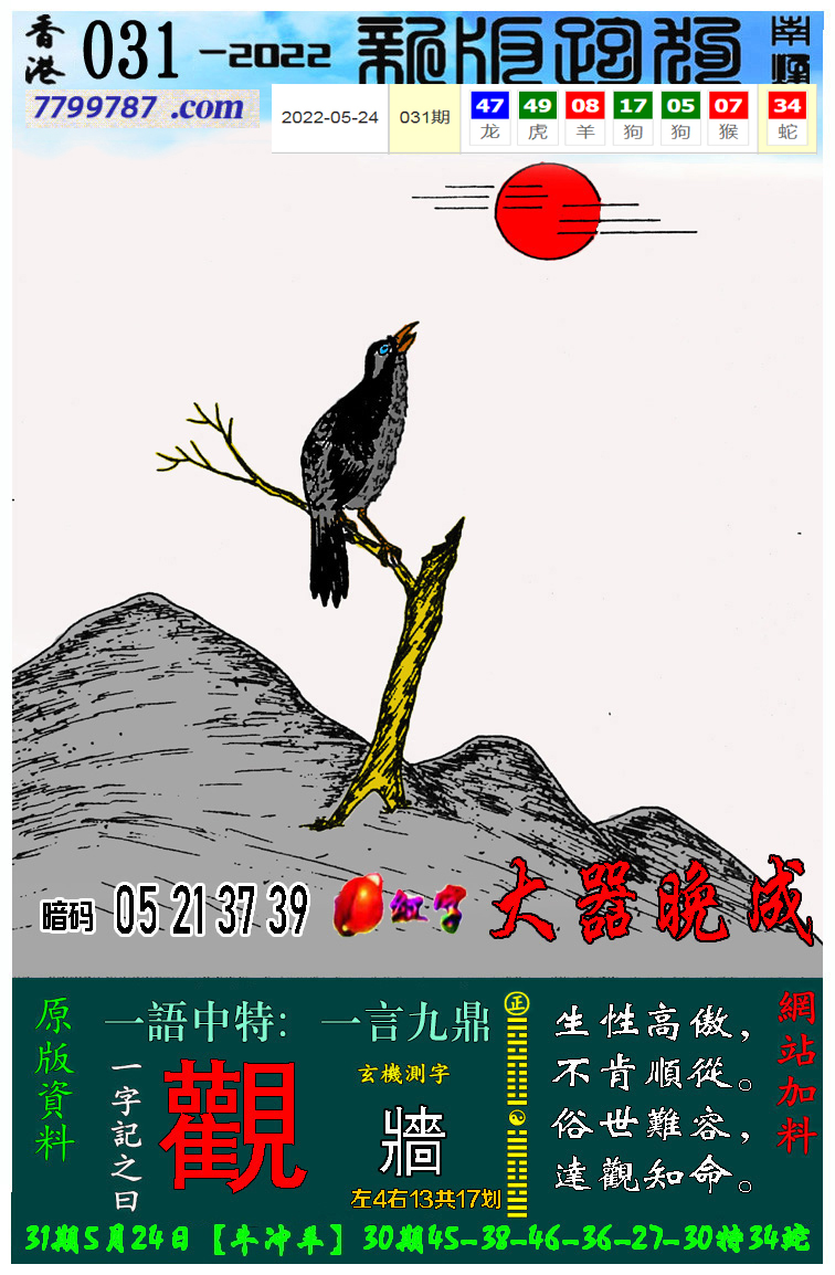 133期新版跑狗一字記之曰:【月】