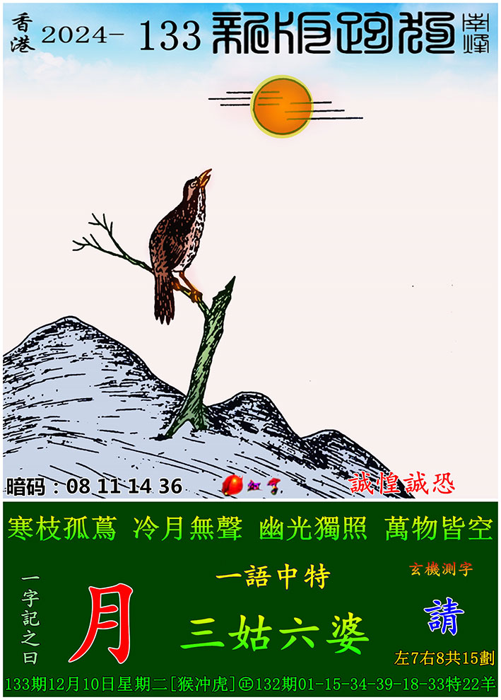 133期:新版跑狗一字記之曰【月】 玄機測字:【請】