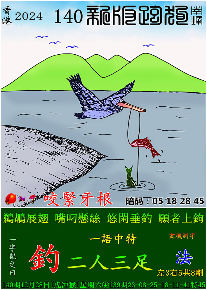 140期新版跑狗一字記之曰:【釣】