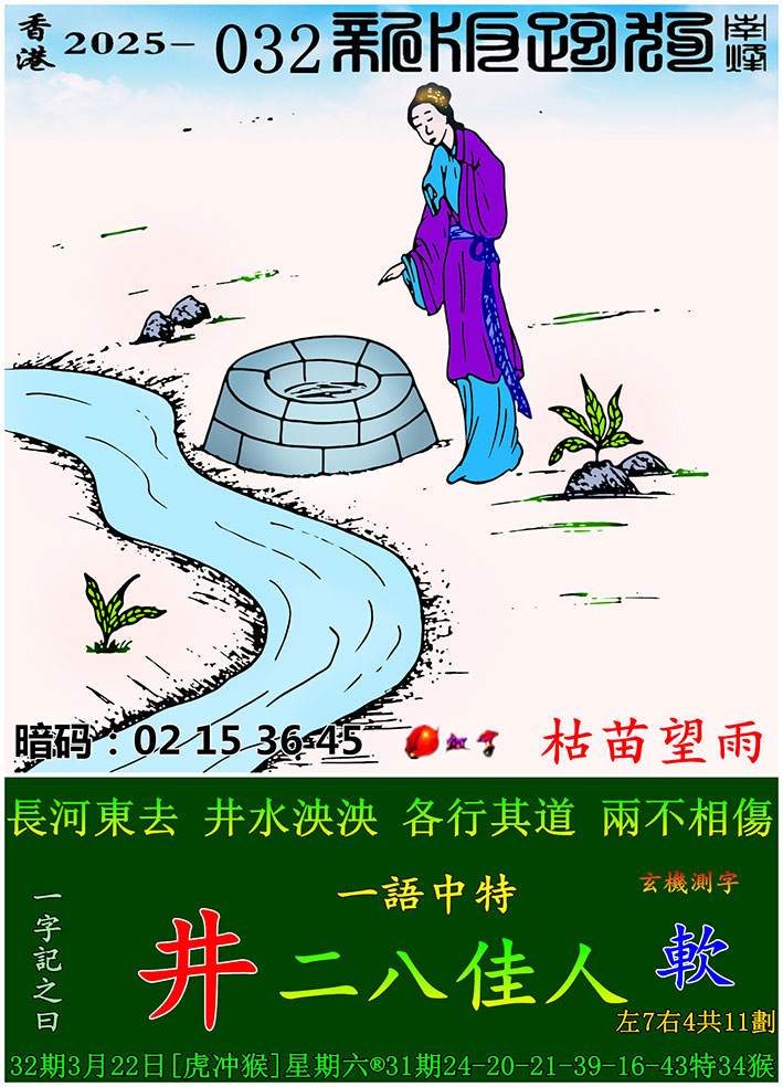 032期:新版跑狗一字記之曰【井】 玄機測字:【軟】