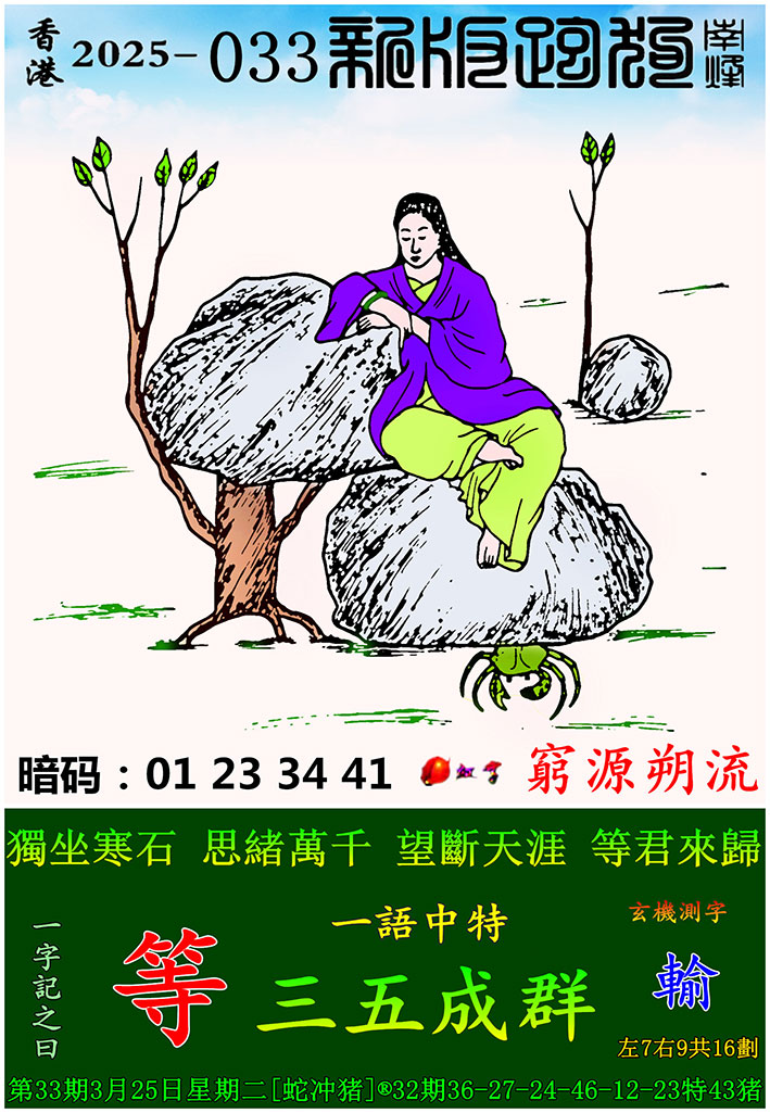 033期:新版跑狗一字記之曰【等】 玄機測字:【輸】