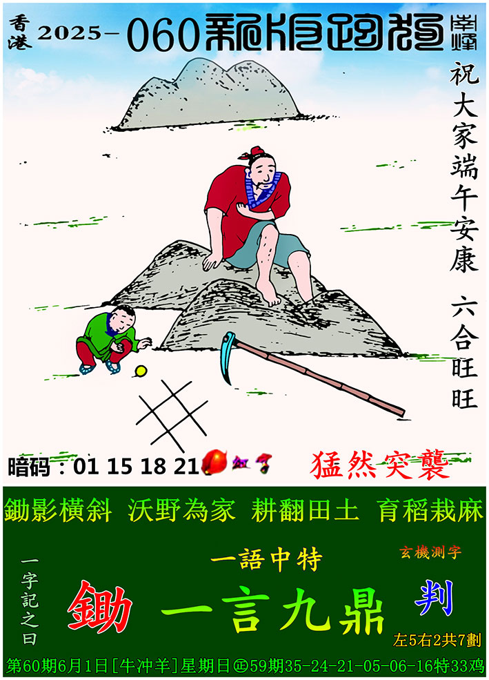 060期:新版跑狗一字記之曰【鋤】 玄機測字:【判】