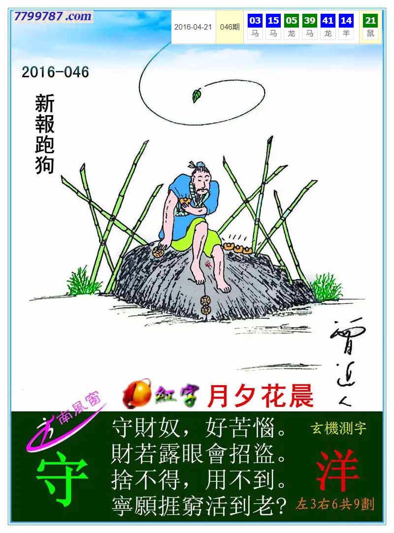 主题 : 110期:新版跑狗一字記之曰【錢】 玄機測字:【增】