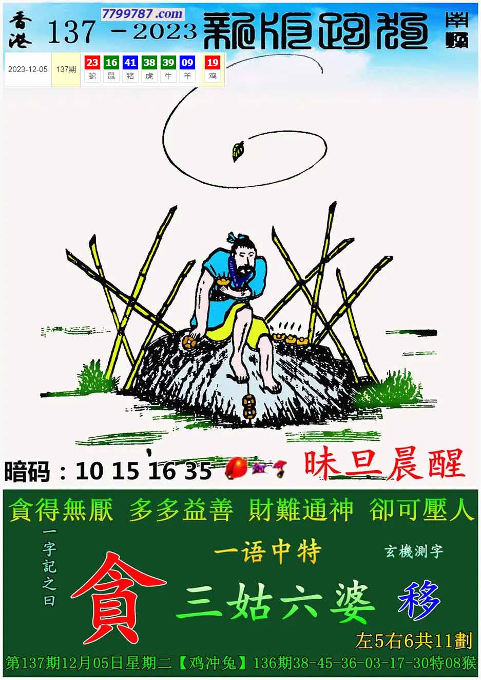 110期:新版跑狗一字記之曰【錢】 玄機測字:【增】