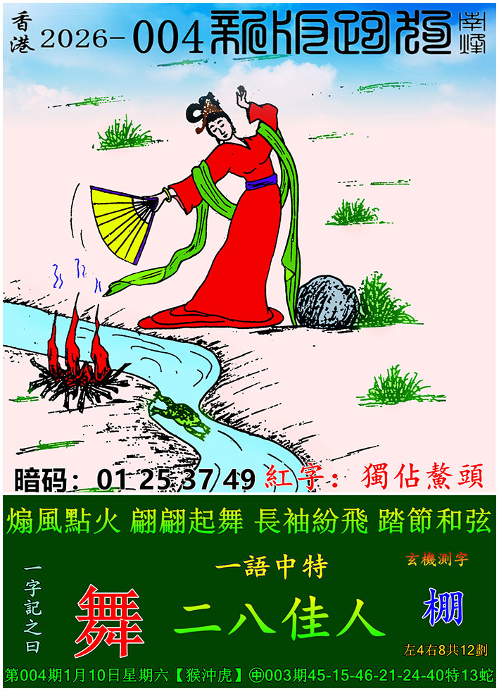 004期新版跑狗一字記之曰:【舞】