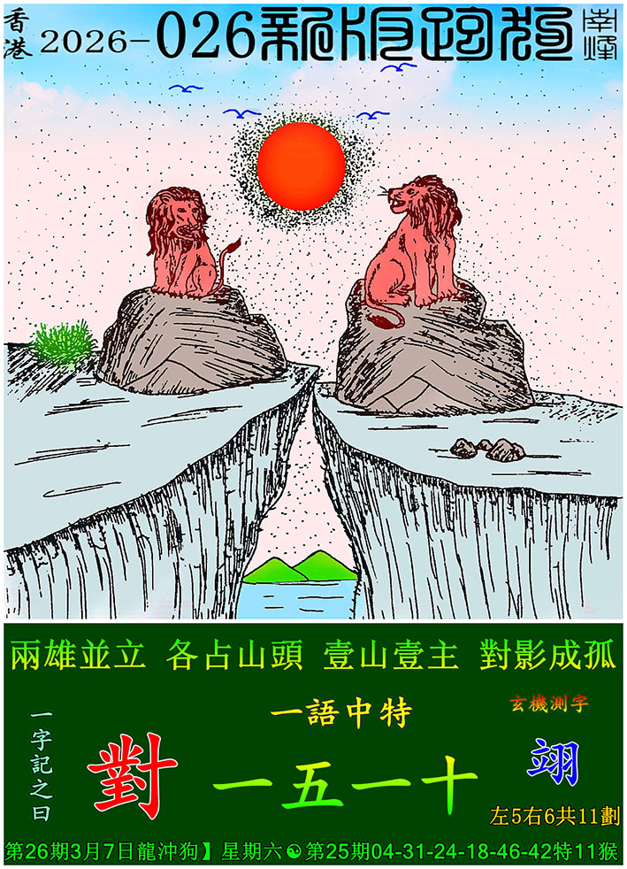 026期:新版跑狗一字記之曰【對】 玄機測字:【翊】