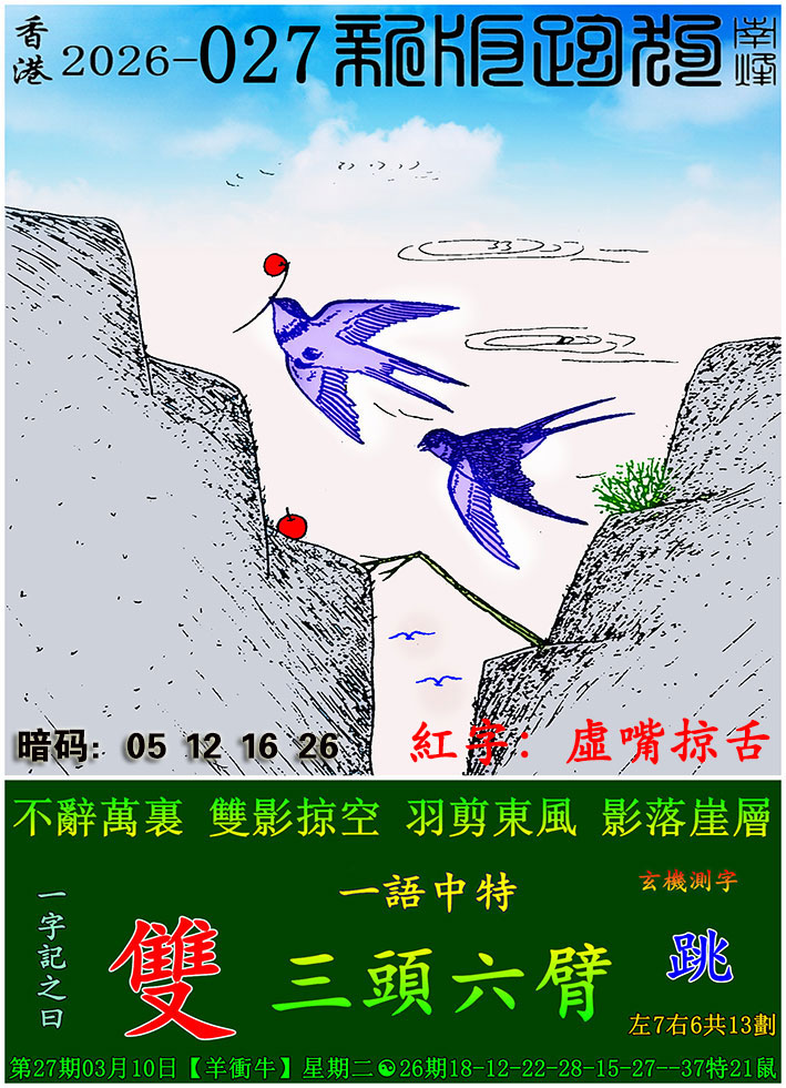 主题 : 027期:新版跑狗一字記之曰【雙】 玄機測字:【跳】